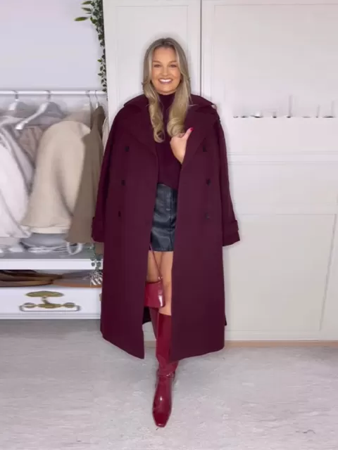 Elegant Double Breasted Long Sleeve Vintage Collar Wine Red Women’s Woolen Coat