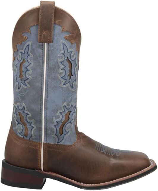 Laredo Womens Isla Tooled-Inlay Embroidered Square Toe Casual Boots Mid Calf Low Heel 1-2″ – Brown