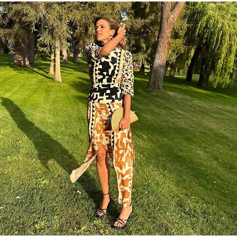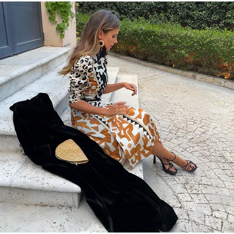 Gather ’round, fashionistas and trendsetters, because we’ve got a showstopper for you! Introducing the 2-Piece Print Mock Neck Long Sleeve A-line Skirt Suit—a fierce ensemble that’s as stylish as it is playful.