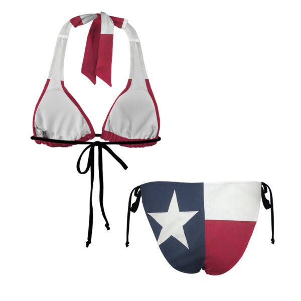 Texas bikini set, red white and blue bikini, lonestar swimsuit, triangle halter bikini, cheeky texas flag bikini, patriotic swimwear for women, texas lovestar bikini, state pride bikini set, adjustable string bikini texas, country girl swimsuit