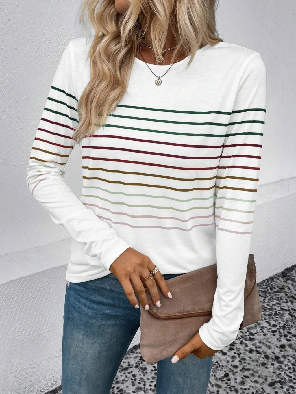 The long sleeves provide just the right amount of coverage for those chillier days, while the round neckline adds a touch of sophistication and elegance.