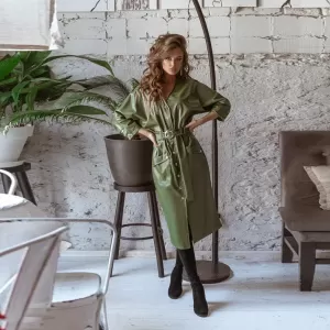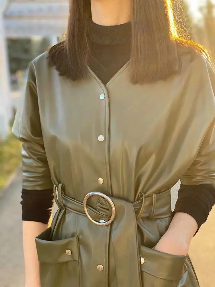 This isn’t just a dress—it’s your new secret weapon. Meet The Midnight Range Rider Dress, a leather dream built for bold entrances, late-night getaways, and owning every room you walk into. With a sleek V-neck, waist-defining spliced waistband, and full-length single-breasted closure, this beauty hugs you in all the right places while keeping things tough, tailored, and timeless.