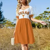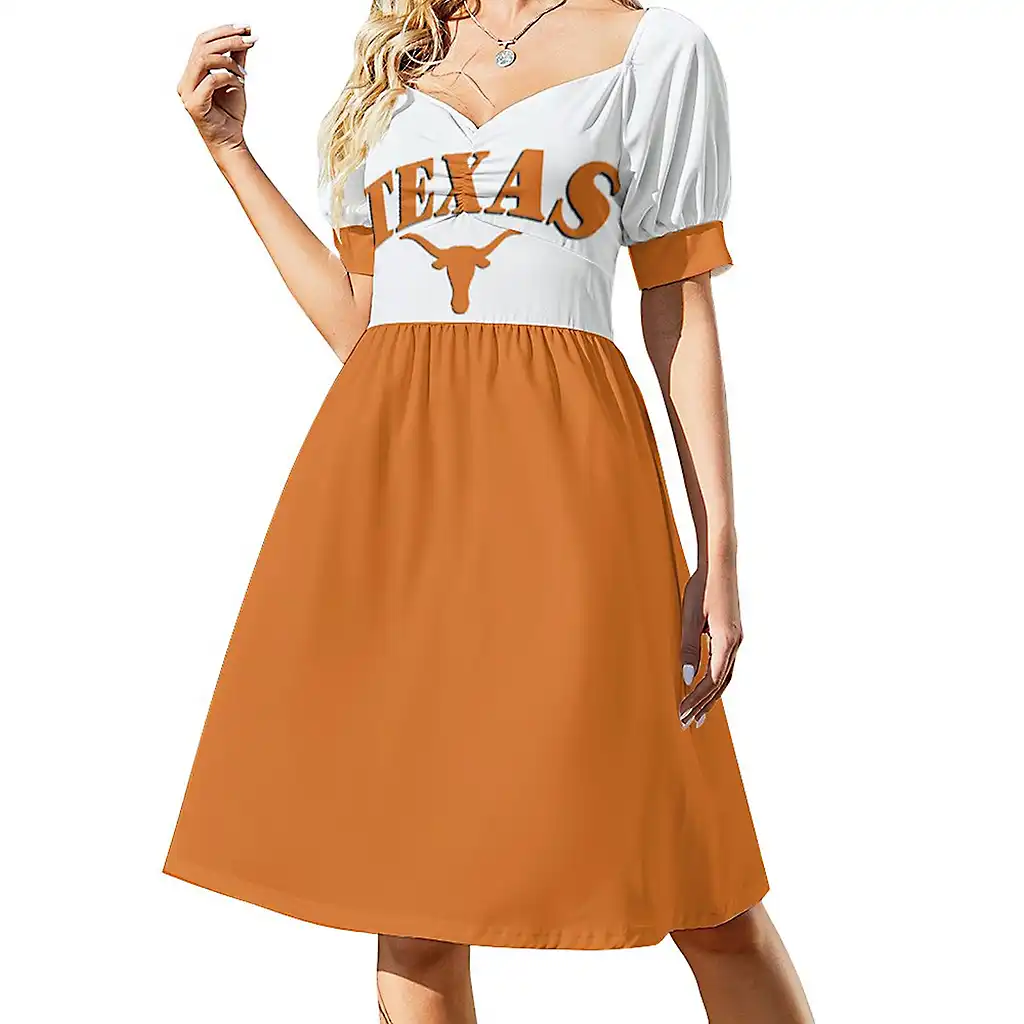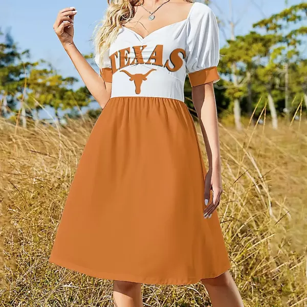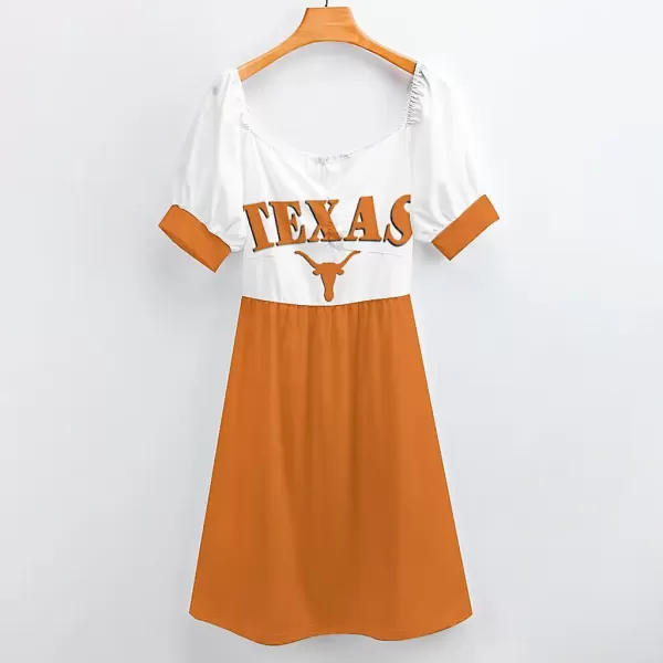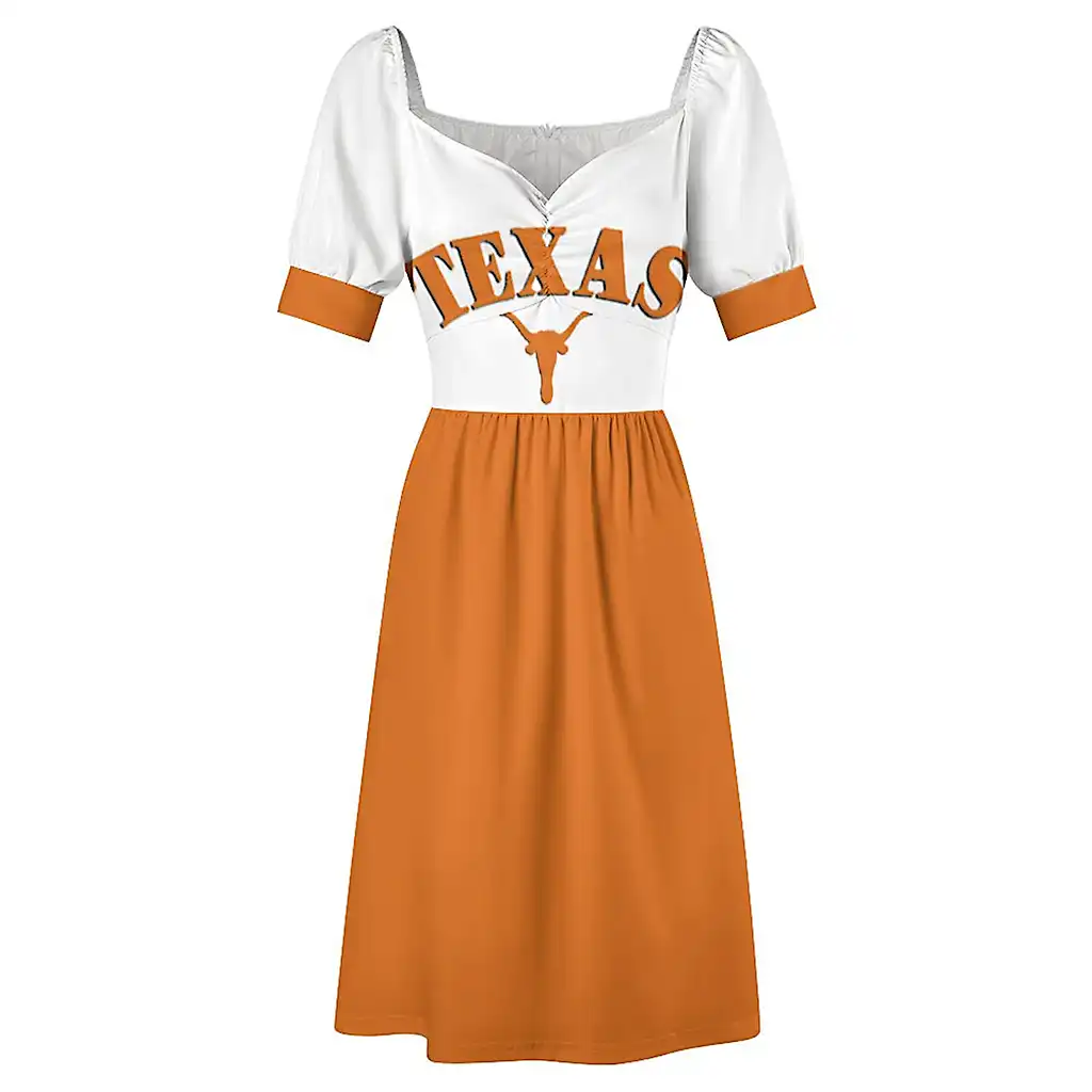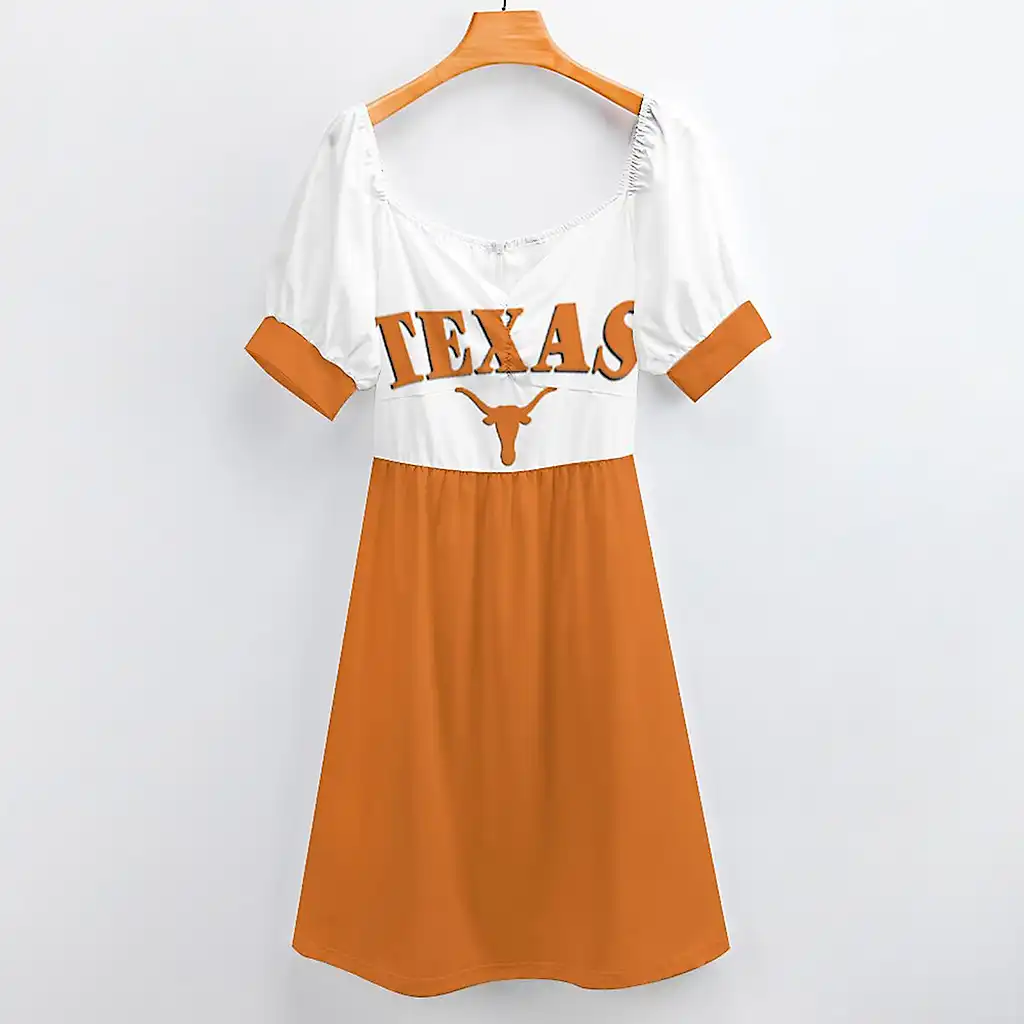 Top Keywords: Texas Longhorns dress, puff sleeve sweetheart dress, women’s team apparel, Texas game day fashion, chic fanwear