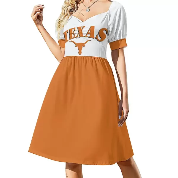 Step out and make a statement with the New Texas Republic Texas Longhorns Orange On White Sweetheart Neck Puff Sleeve Dress!