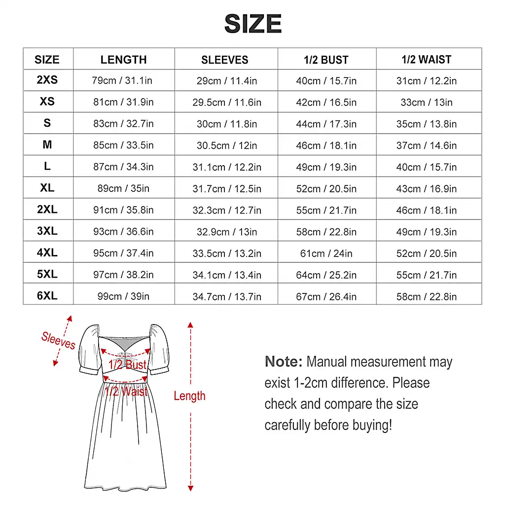 | Size | 2XS, XS, S, M, L, XL, 2XL, 3XL, 4XL, 5XL, 6XL |