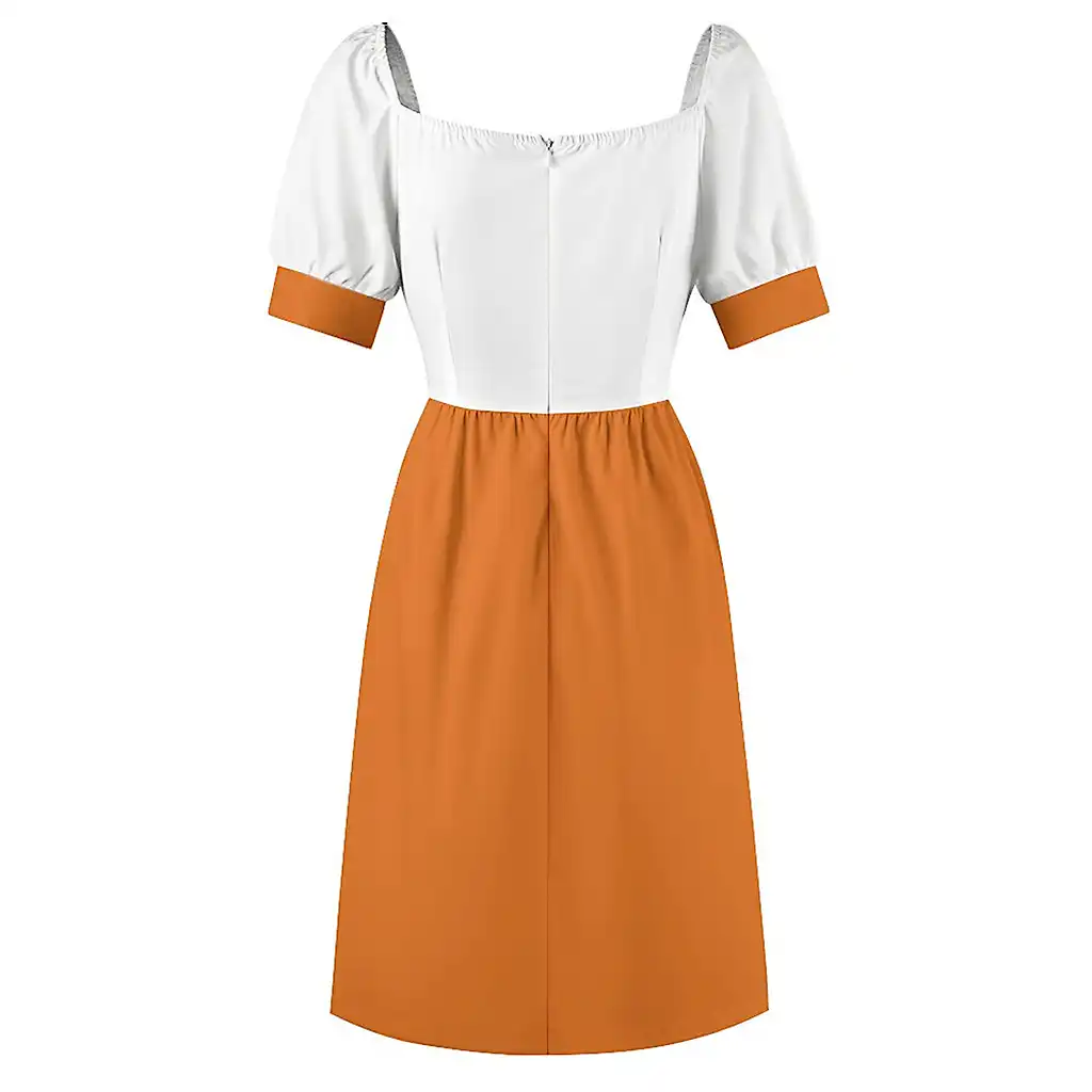 With its flattering sweetheart neckline and eye-catching orange-on-white color scheme, this dress ensures all eyes are on you—whether you’re cheering in the stands or turning heads at brunch.