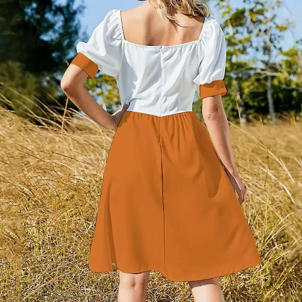 New Texas Republic Texas Longhorns Orange On White Sweetheart Neck Puff Sleeve Dress