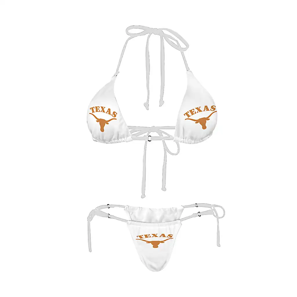Turn heads poolside or beachside with the New Texas Republic Texas Longhorns Women’s Halter String Bikini Set—where southern charm meets bold summer style.