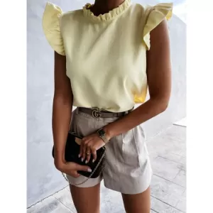 The loose fit of the blouse provides a relaxed yet polished look, ensuring comfort without compromising on style. The short sleeves add a touch of casual charm, while the button-up front offers versatility in styling. You can wear it fully buttoned for a sleek, professional look, or leave a few buttons undone for a more laid-back vibe. The blouse is available in a range of classic and trendy colors, allowing you to choose the perfect shade to complement your personal style.