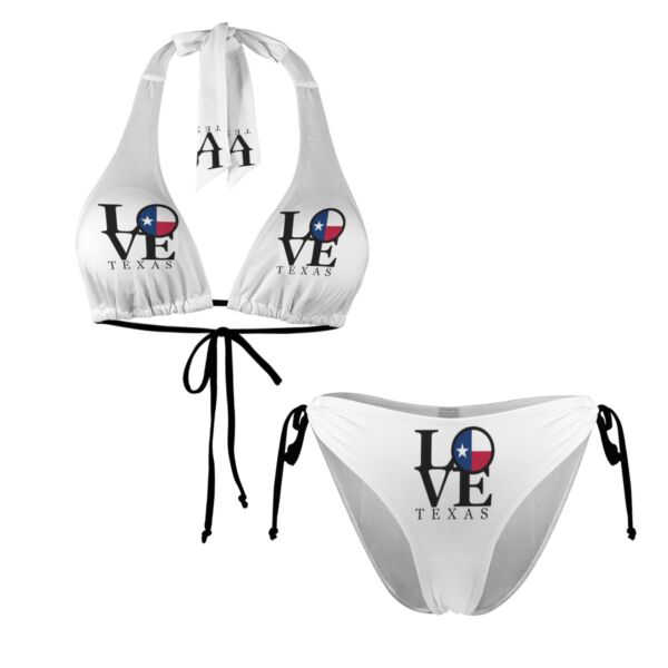 The Texas Love Halterneck String Bikini Set brings big heart, bold color, and state pride to every pool and beach day.