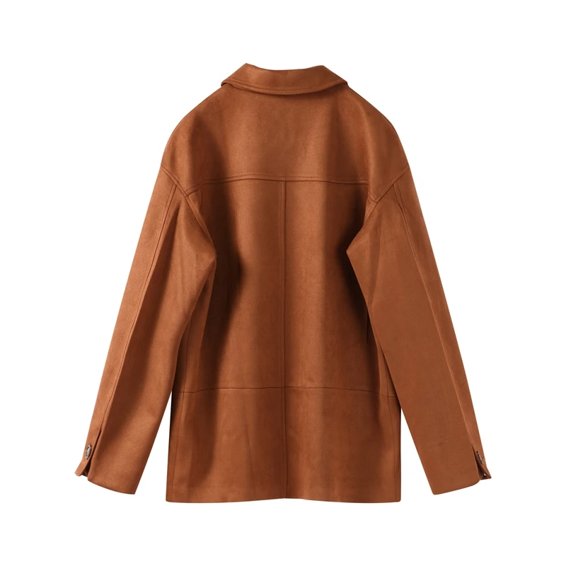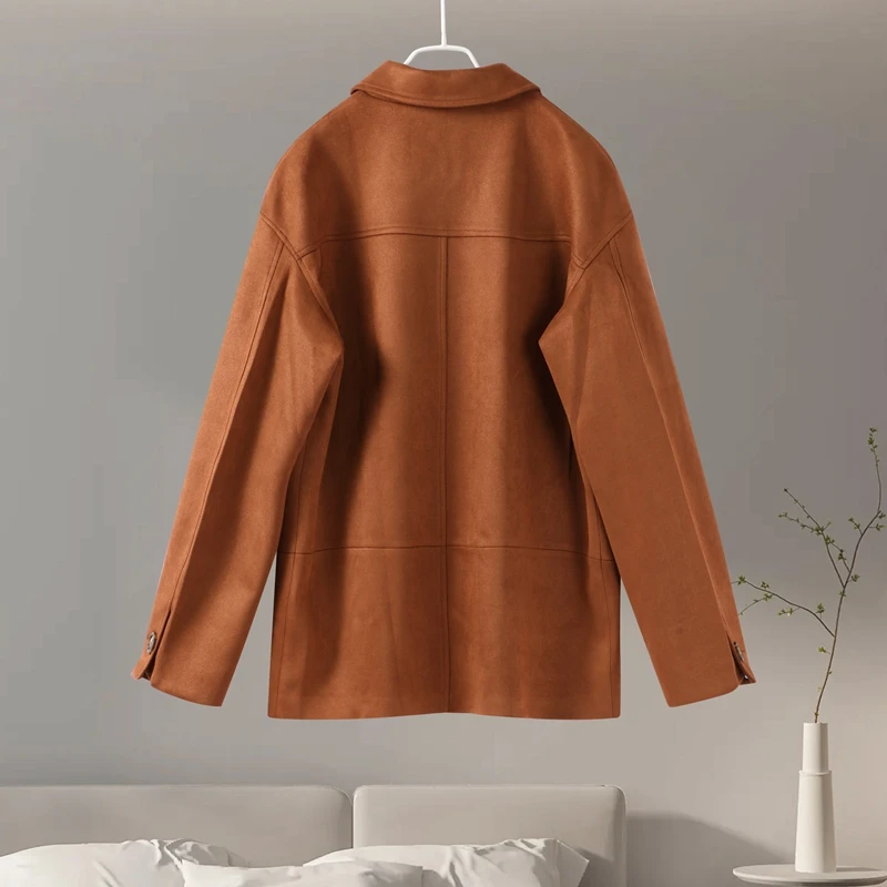 Be the first to review “Vintage Brown Suede Leather Loose Single Breasted Long Sleeves Coat”