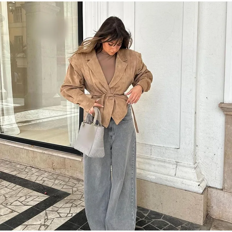 - Lapel and Belt Details: The lapel adds a sleek, polished look, while the belt cinches your waist and gives this jacket a flattering silhouette. Whether you prefer to leave the belt undone for a more relaxed feel or tie it tightly for a structured look, this jacket has you covered.