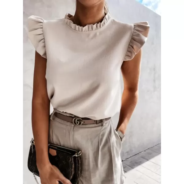 Women’s Elegant Ruffled Round Neck Sleeveless Solid Color Casual Blouse